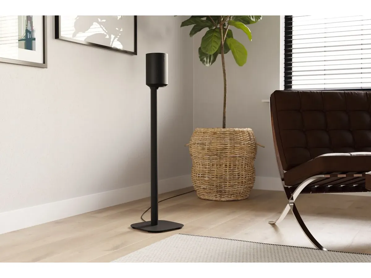Die Montage Ihres Sonos Era 100 auf einem Standfuss sorgt für ein ideales Hörerlebnis.